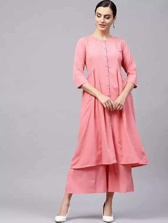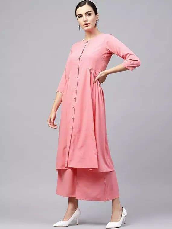 Fifth Avenue Women's TPS191 Button Detail Kurti and Pants Set - Pink