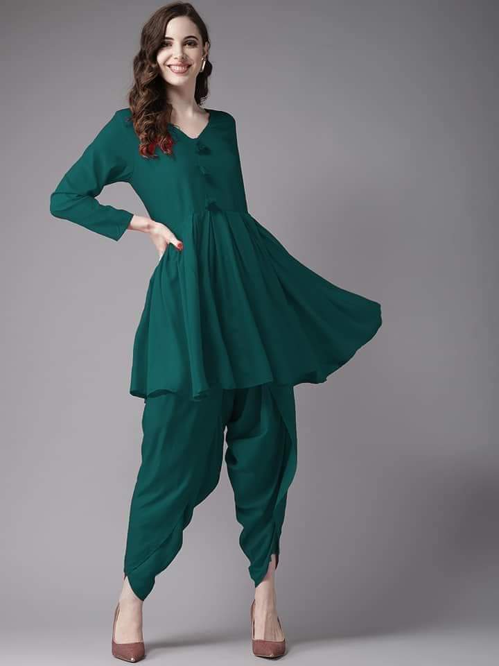 Fifth Avenue Women's TPS237 Tassel Detail Kurti and Dhoti Pants Set - Sea Green