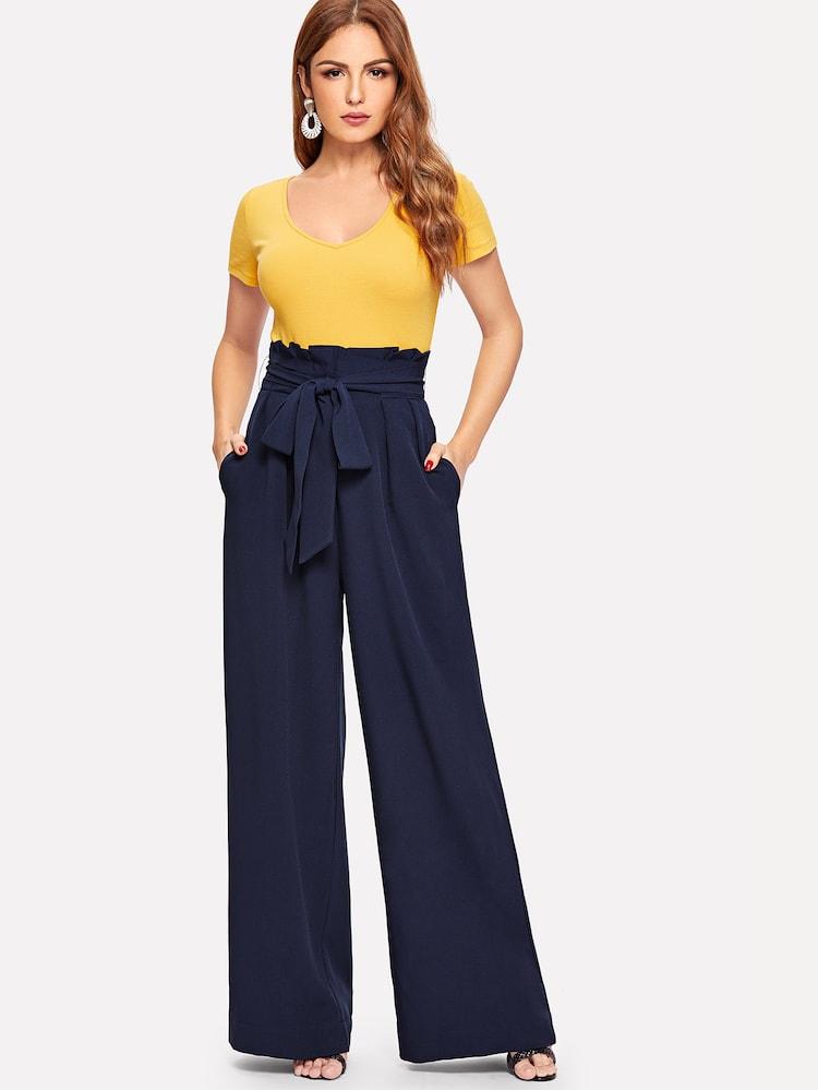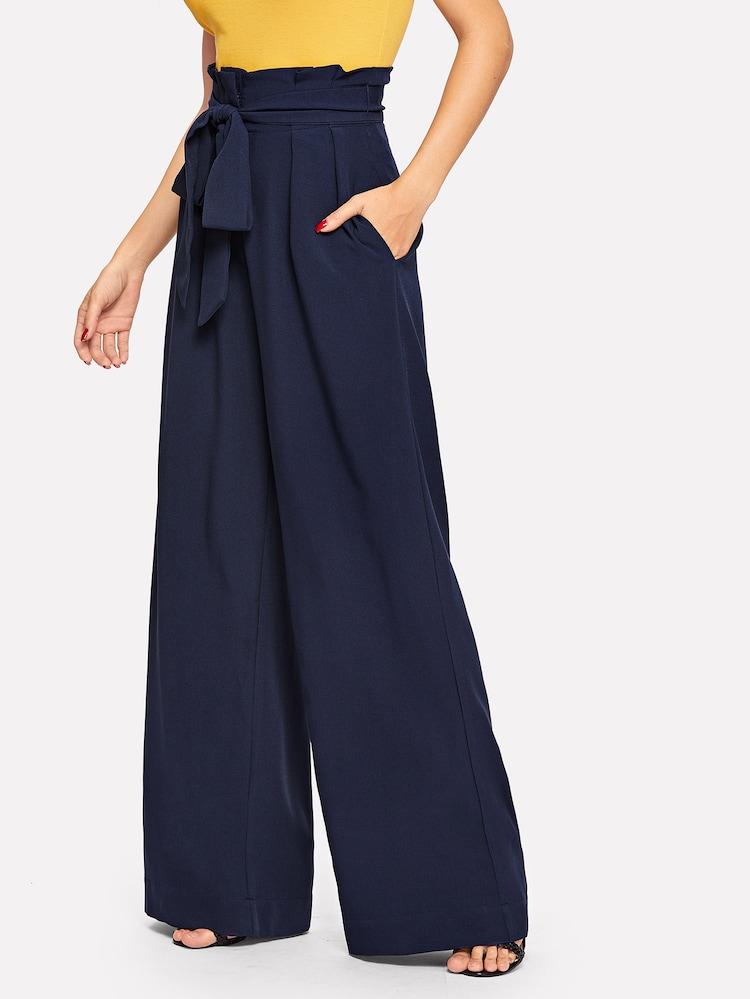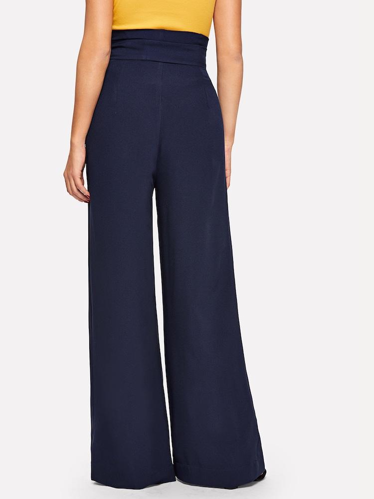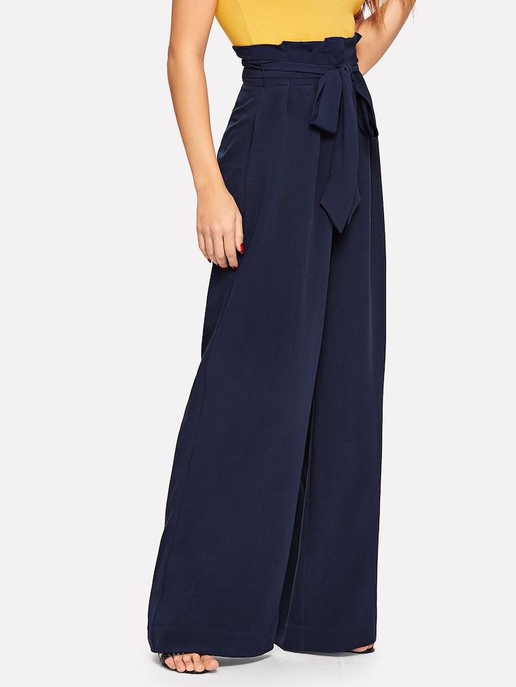 Fifth Avenue Georgette GTTWP17 Self Belted Extra Wide Leg Pants - Navy Blue