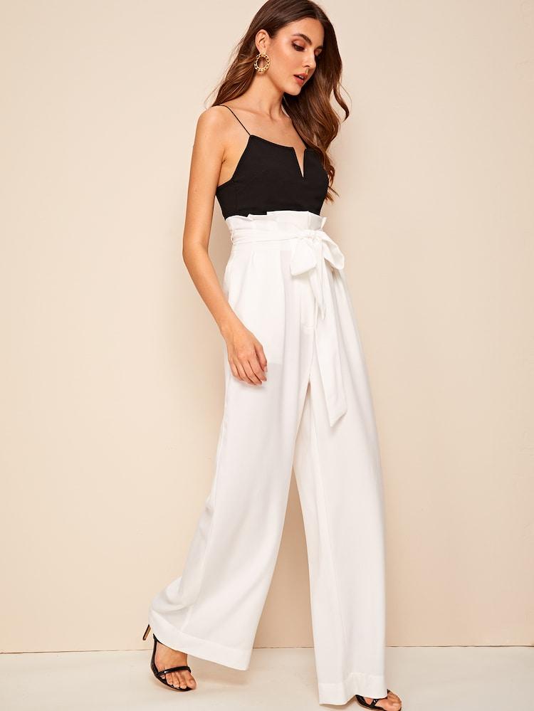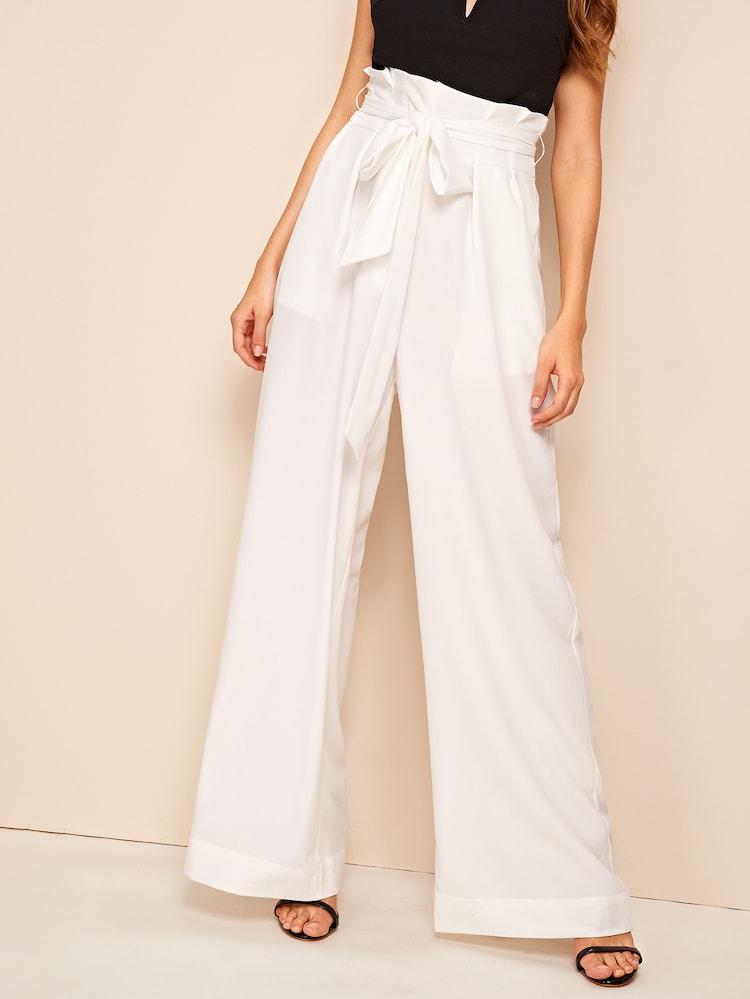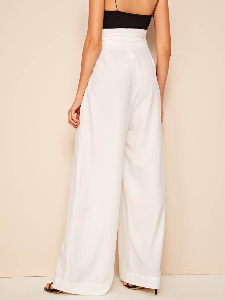 Fifth Avenue Georgette GTTWP17 Self Belted Extra Wide Leg Pants - White